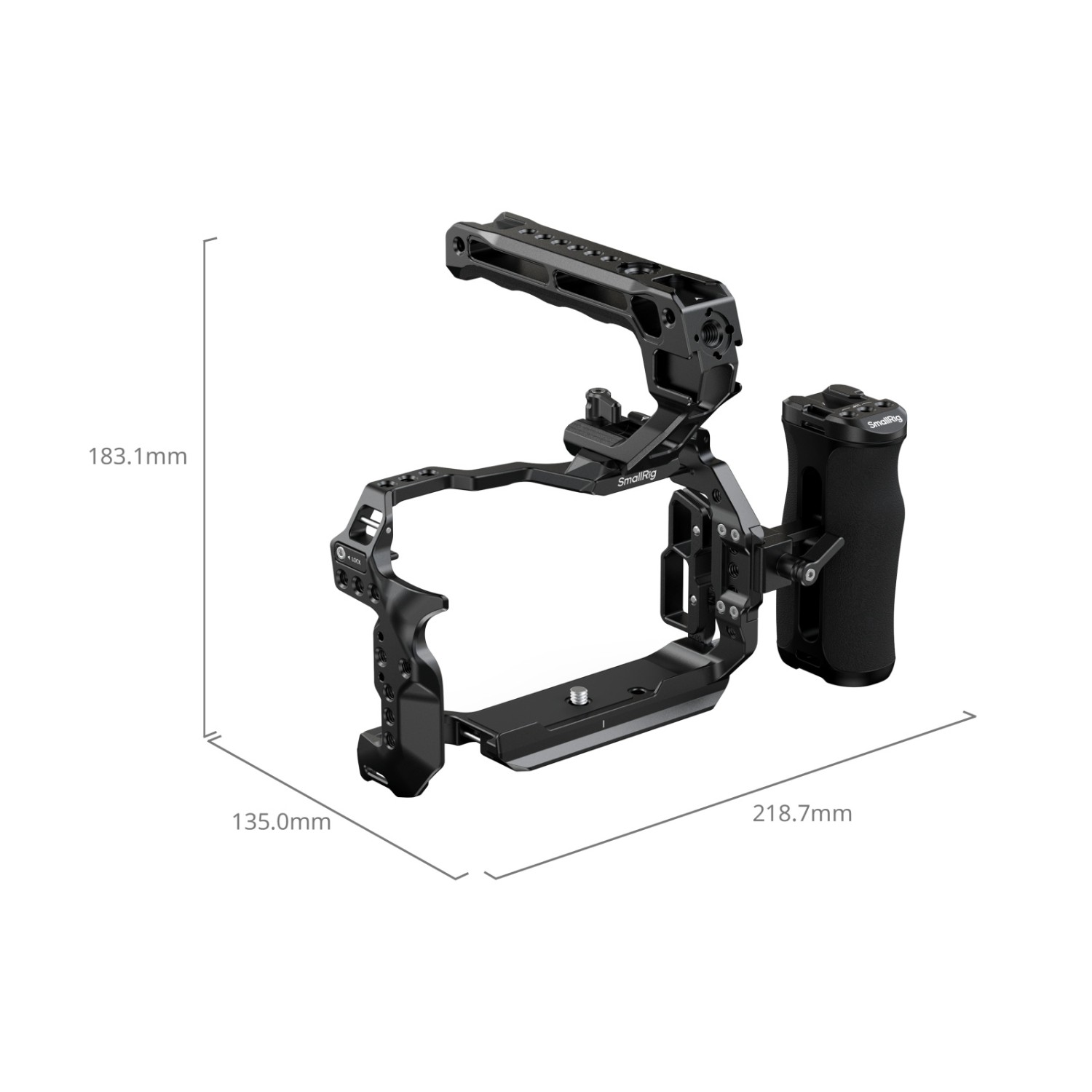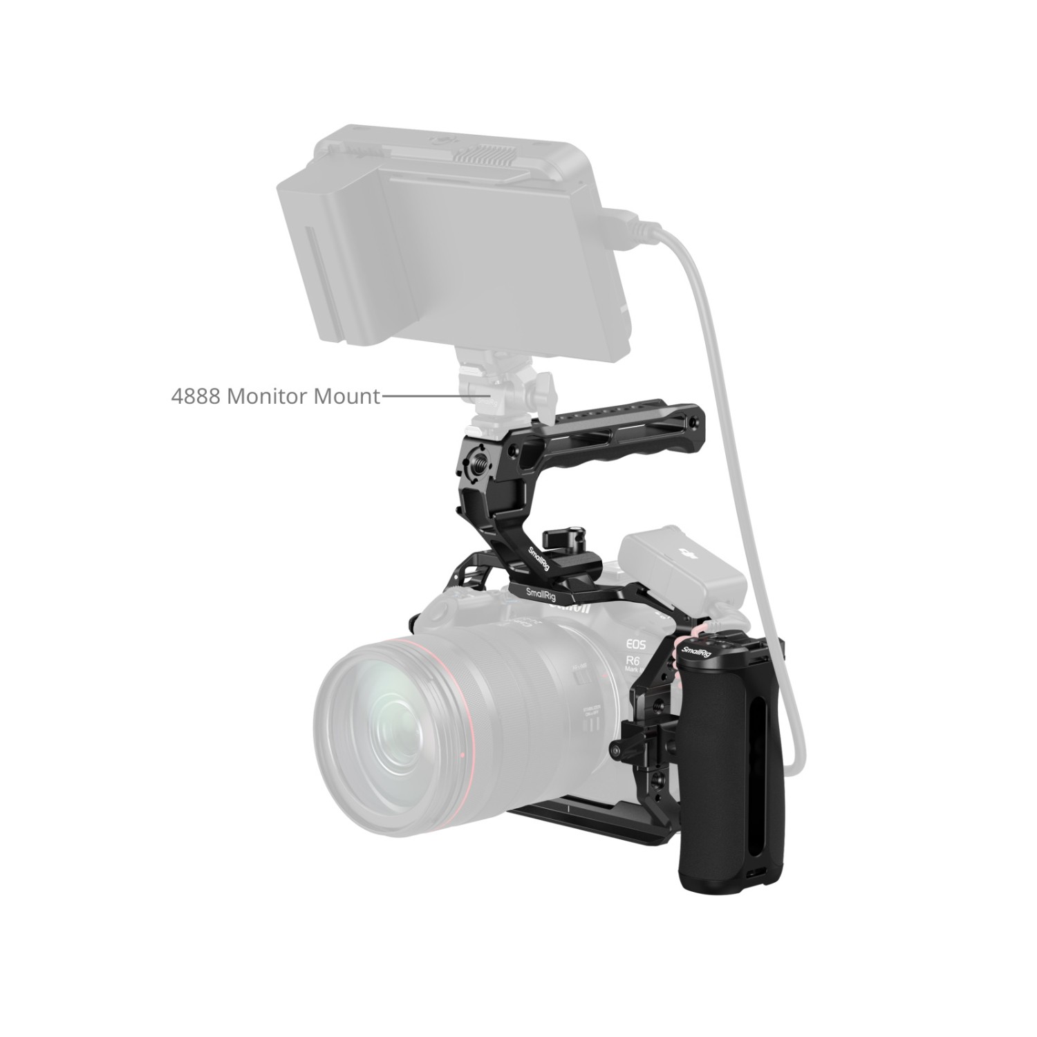 A SmallRig Cage Basic Kit for Canon EOS R6 Mark III / R6 Mark II (Advanced Edition) 5956 úgy lett kialakítva, hogy csökkenti a kar terhelését és növeli a stabilitást kézi felvételek készítése közben, miközben széles körű kiegészítő rögzítési lehetőségeket kínál. Tartalmaz egy keretet, egy HDMI kábelbilincset, egy felső fogantyút és egy oldalsó fogantyút.