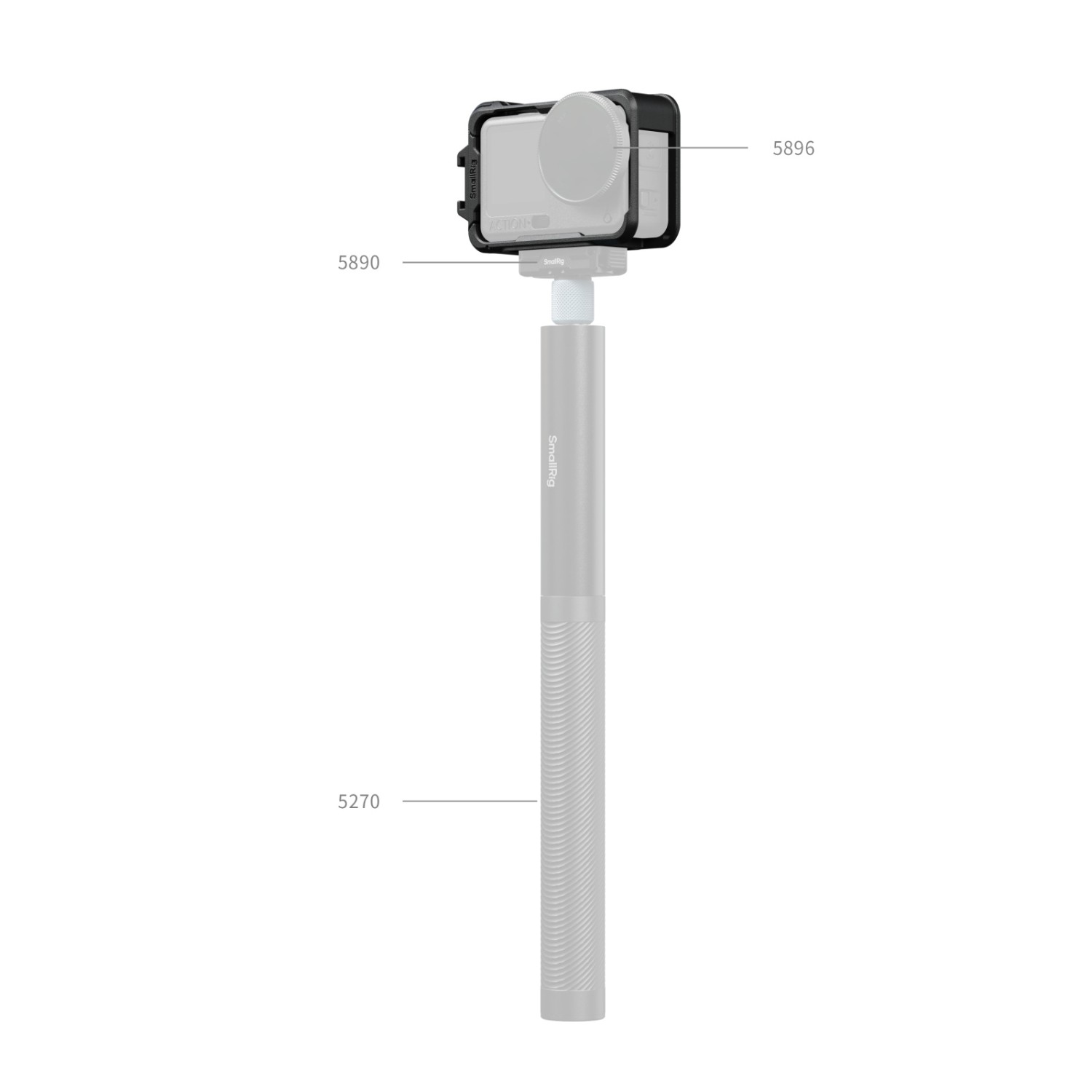 A keret két hideg cipőfoglalattal rendelkezik LED-es videólámpák vagy mikrofonok rögzítéséhez, és kompatibilis a DJI Mic 2 és a SmallRig LED-es videólámpákkal (ID 5446). Oldalsó mágneses gyorskioldó interfésszel van felszerelve, hogy kompatibilis legyen a DJI eredeti kétirányú gyorskioldó adapterfoglalatával. A nyitott aljú kialakítás megőrzi a hozzáférést a kamera beépített mágneses gyorskioldó rögzítéséhez, és párosítható a SmallRig kétirányú gyorskioldó adapter rögzítéseivel (ID 5890, 5779, 5918) a gyors vízszintes/függőleges váltáshoz. Az akkumulátor rekesz a ketrec eltávolítása nélkül is hozzáférhető, megkönnyítve az akkumulátor cseréjét. Ezenkívül a ketrec oldalán egy pántlyuk található, amely megakadályozza a véletlen leejtést kézi felvételek készítése közben.