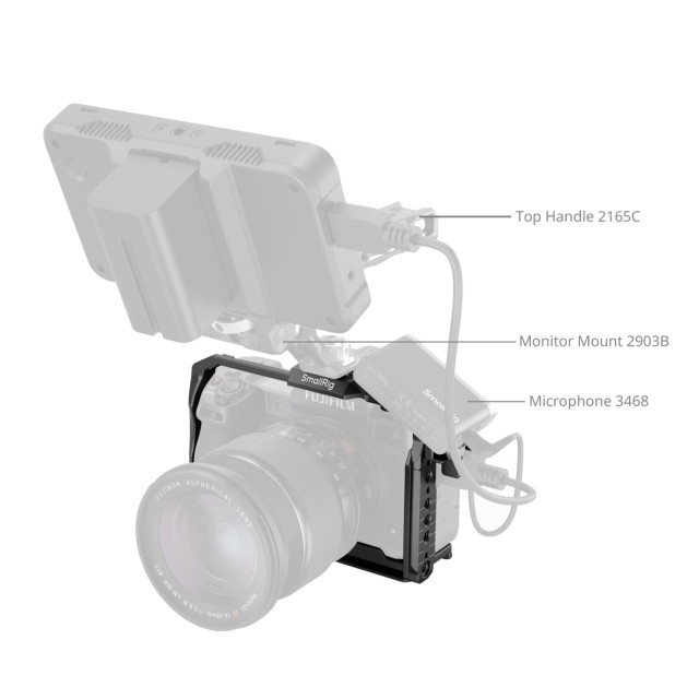 A SmallRig Cage for FUJIFILM X-H2 / X-H2S 3934B úgy lett kialakítva, hogy védelmet nyújtson a fényképezőgépnek, miközben számos bővítő interfészt kínál. A ketrec biztonságosan rögzíti a fényképezőgépet egy alsó 1/4"-20-as csavar és két oldalsó pozícionáló blokk segítségével, valamint több beépített csúszásgátló szilikonbetéttel, amelyek megakadályozzák a karcolódást. Emellett nem akadályozza a hozzáférést a fényképezőgép interfészeinek, az LCD-képernyőnek vagy az akkumulátortartó rekesznek a hozzáférését.