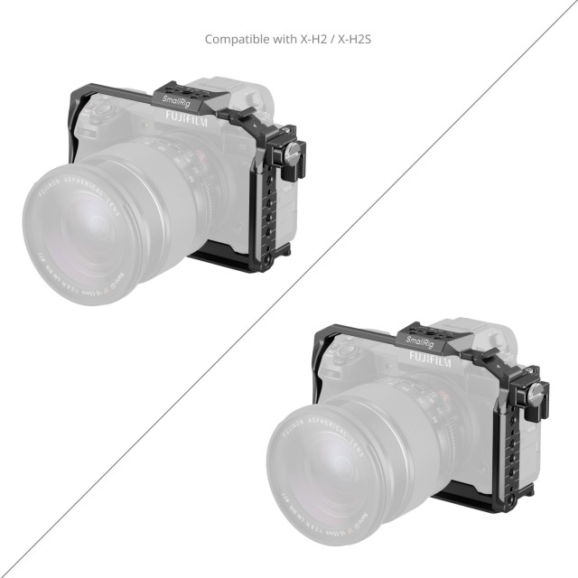 A SmallRig Cage for FUJIFILM X-H2 / X-H2S 3934B úgy lett kialakítva, hogy védelmet nyújtson a fényképezőgépnek, miközben számos bővítési interfészt kínál. A ketrec biztonságosan rögzíti a fényképezőgépet egy alsó 1/4"-20-as csavar és két oldalsó pozícionáló blokk segítségével, valamint több beépített csúszásgátló szilikonbetéttel a karcolások elkerülése érdekében. Emellett nem akadályozza a hozzáférést a fényképezőgép interfészeinek, az LCD-képernyőnek vagy az akkumulátortartónak a hozzáférését.