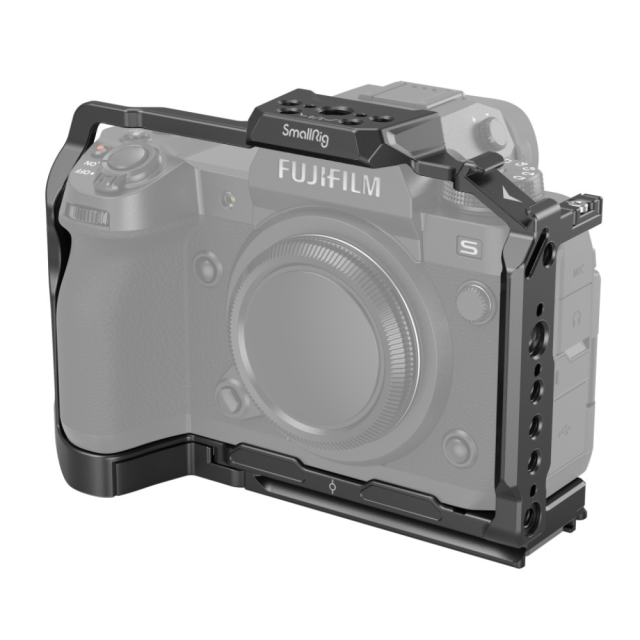 A SmallRig Cage for FUJIFILM X-H2 / X-H2S 3934 a kamera védelmére és változatos rögzítési pontok biztosítására szolgál. A fényképezőgépet egy 1/4''-20-as csavarral, egy alul elhelyezett rögzítőcsappal és egy bal oldali rögzítő adapterrel rögzíti, és gumipárnákkal rendelkezik a karcolások elkerülése érdekében. A ketrec a karcolásokat megakadályozó védőpárnákkal és az akkumulátor ajtajánál található csuklókarral rendelkezik, amely tökéletesen illeszkedik a fényképezőgéphez, és javítja a kisujj fogási élményét. A ketrec teljes hozzáférést biztosít a portokhoz, a tárcsához, az LCD képernyőhöz és az akkumulátor ajtajához. 1/4"-20 és 3/8"-16-os menetes furatokkal rendelkezik az oldalsó fogantyú 2093 és 3814, a felső fogantyú 3765, a kábelbilincs 1693, a Magic Arm 2070 és 2115, a monitor tartó 2904 és 2903, a Manfrotto gyorskioldó lemez 1280 stb. számára. egy 1/4"-20-as helymeghatározó furat az oldalán, amely támogatja a 3276 Single Rod Clamp 3276-ot a Follow Focus 3010-hez; cold shoe rögzítők mikrofonokhoz, LED lámpákhoz stb.; és NATO sínek az oldalsó fogantyúhoz 3260 & 3813 és a Magic Arm 2116-hoz; hevederfuratok a 3848 & 2456-os kézi hevederhez. Az alsó Arca-Swiss gyorskioldó lemez támogatja az Arca-Swiss állványt és az RS 2 / RSC 2 / RS 3 / RS 3 Pro-t a stabilizátoros, kézi és állványos felvételek közötti gyors váltáshoz. Emellett egy beépített laposfejű csavarhúzó is rendelkezésre áll, amely megkönnyíti a ketrec összeszerelését és szétszerelését.