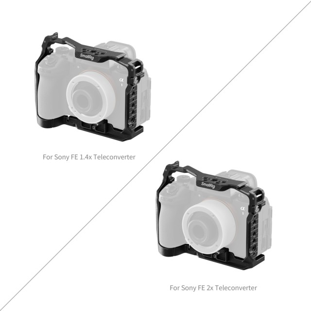 A SmallRig Cage for Sony Alpha 1 II / Alpha 9 III 5642 kifejezetten vadállatok fotózására lett kifejlesztve. A keret hárompontos rögzítőrendszerrel rendelkezik, amely egy alsó 1/4"-20-as csavart és két oldalsó csavart használ a kamera rögzítéséhez és az elhajlás megakadályozásához, míg a beépített párnák védik a karcolásoktól. Az integrált teleobjektív-támogató kompatibilis a Sony FE 1,4x és 2,0x modellekkel, csökkentve a lencsecsatlakozó terhelését a hosszú gyújtótávolságoknál történő stabilabb felvételek érdekében.