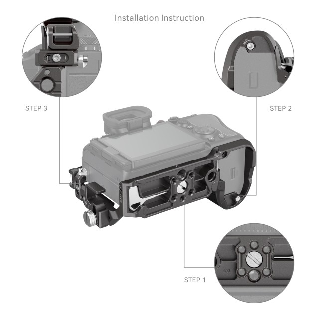 A SmallRig Cage for Sony Alpha 9 III 4533 a fényképezőgép védelmére és tartozékokkal való bővítésére szolgál. A hárompontos elhajlásgátló reteszelőrendszer szilárdan rögzíti az Alpha 9 III fényképezőgépet a helymeghatározó csapok, egy 1/4"-20-as csavar az alján és egy M2,5-es csavar a bal oldalon. Az áramvonalas ketrec kialakítása biztosítja a gombok akadálytalan elérését, kényelmesebb használatot biztosítva.