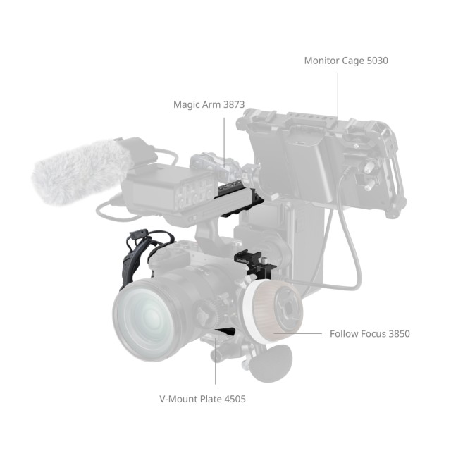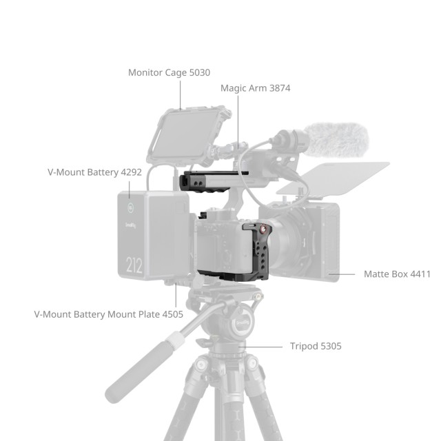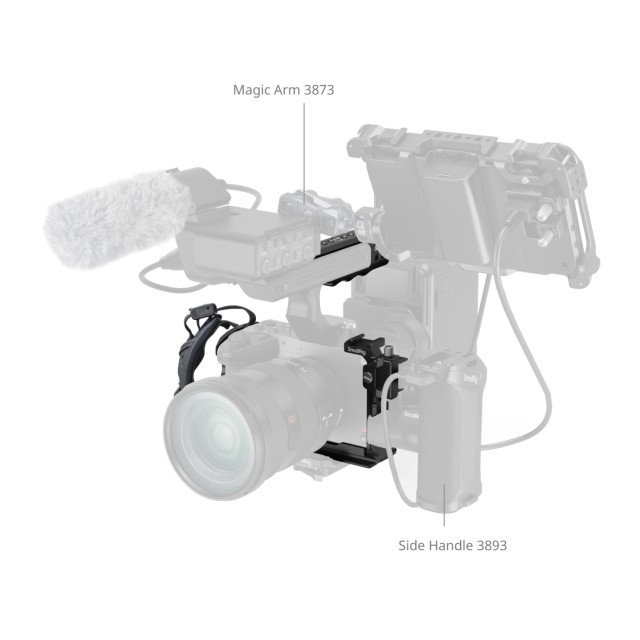 Levehető NATO-sín (felső lemez): Kompatibilis a Sony XLR felső fogantyújával vagy a SmallRig forgatható felső fogantyújával (ID 4152) a zökkenőmentes EVF-működtetés érdekében