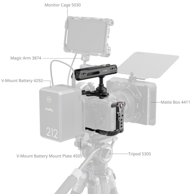 Levehető NATO sín (felső lemez): Kompatibilis a Sony XLR felső fogantyújával vagy a SmallRig forgó felső fogantyújával (ID 4152) a zökkenőmentes EVF működéshez