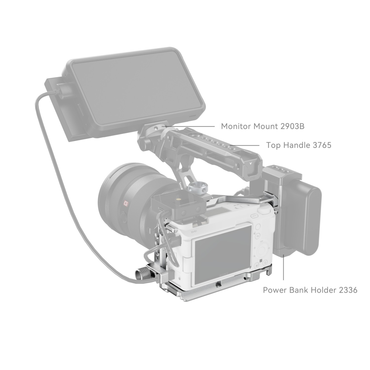A SmallRig Cage Kit for Sony ZV-E1(Limited Edition) 4320 a tartozékok rögzítésére, valamint a kamera és a HDMI-port védelmére szolgál. Tartalmaz egy szilikon fogantyúval ellátott ketrecet és egy HDMI-kábelrögzítőt. A ketrec a fényképezőgépet egy 1/4"-20-as csavarral az alján és egy oldalsó reteszelő adapterrel mindkét oldalán rögzíti, az ergonomikus szilikon fogantyú pedig kényelmes fogást biztosít. A HDMI-kábelrögzítő a ZV-E1 bal oldalára egy 1/4"-20-as hüvelykujjas csavarral és két csavarodásgátló csap segítségével rögzíthető a HDMI-port védelme és a stabil átvitel biztosítása érdekében.