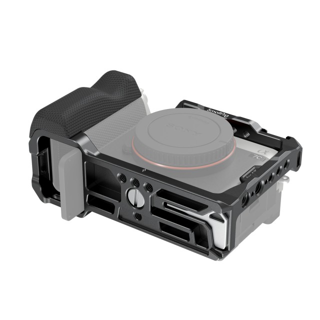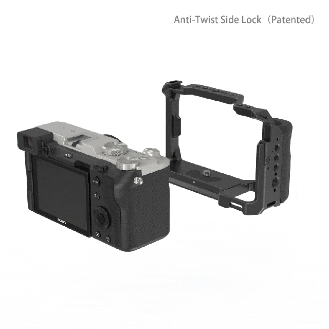 A Sony A7C kamerákhoz kifejlesztett SmallRig 3212-es, oldalsó markolattal ellátott cage úgy lett kialakítva, hogy a professzionális videókészítés során rögzítési pontokat biztosítson olyan tartozékok számára, mint a monitorok, mikrofonok és LED-fények. Integrált szilikon fogantyúval rendelkezik, amely ergonomikusan van kialakítva, hogy fokozza a tartás élményét. A cage a kamerát egy 1/4"-20-as csavarral rögzíti az alján. A csavarodás további megakadályozása érdekében használhatja a jobb oldali zárat is, ha a csúszkát felfelé tolja, és a mellékelt kis csavart a fényképezőgép pántjának lyukába rögzíti.