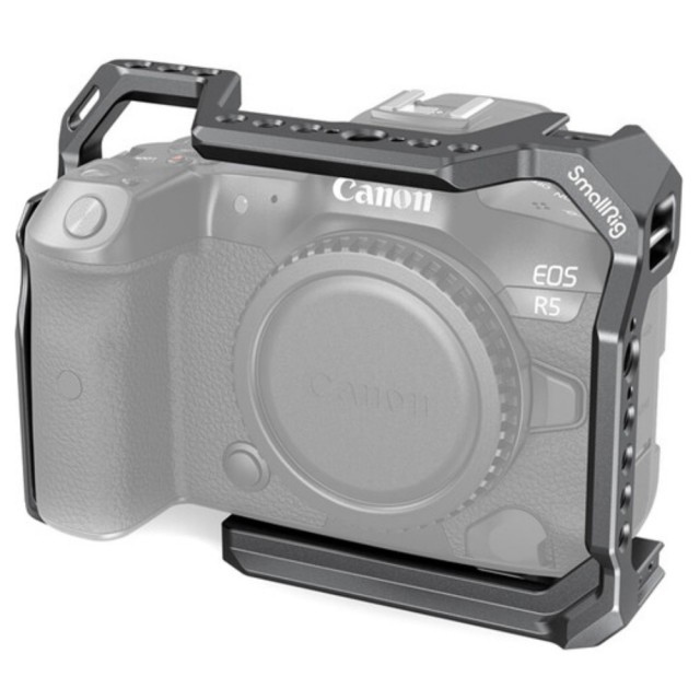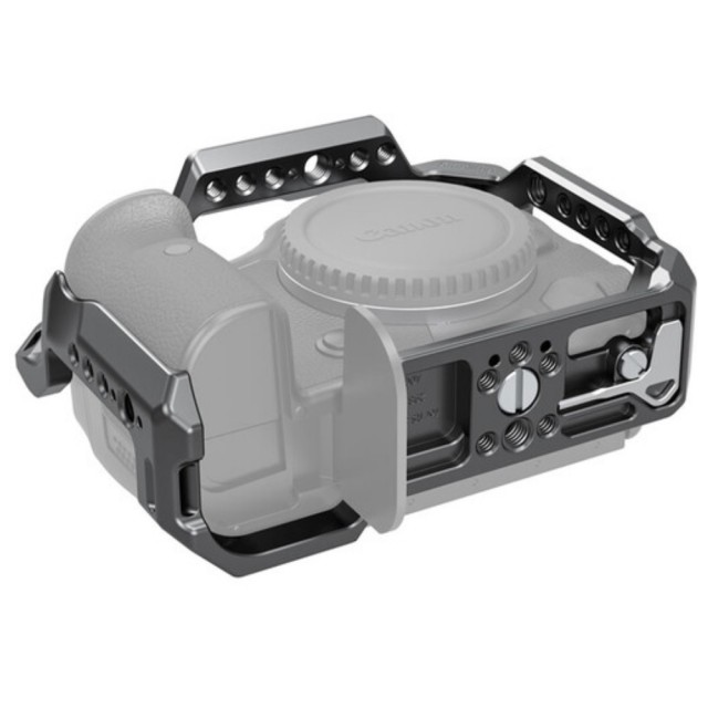 Ezzel a SmallRig oldalsó fogantyúval ellátott fényképezőgép cage készlettel védelmet és különböző tartozékokat adhat Canon EOS R5 vagy R6 fényképezőgépéhez. A készlet tartalmaz egy teljes cage-et, egy fából készült oldalsó fogantyút és egy HDMI/USB Type-C kábelbilincset.