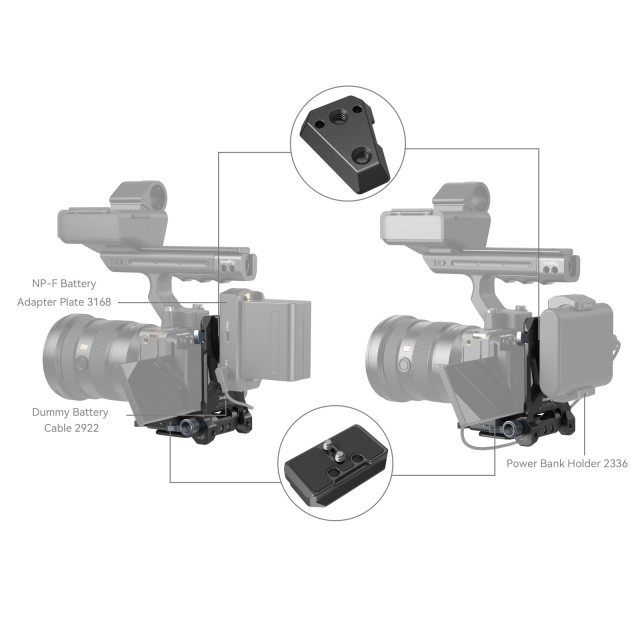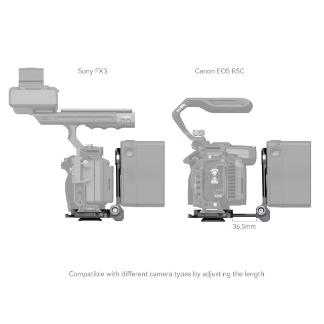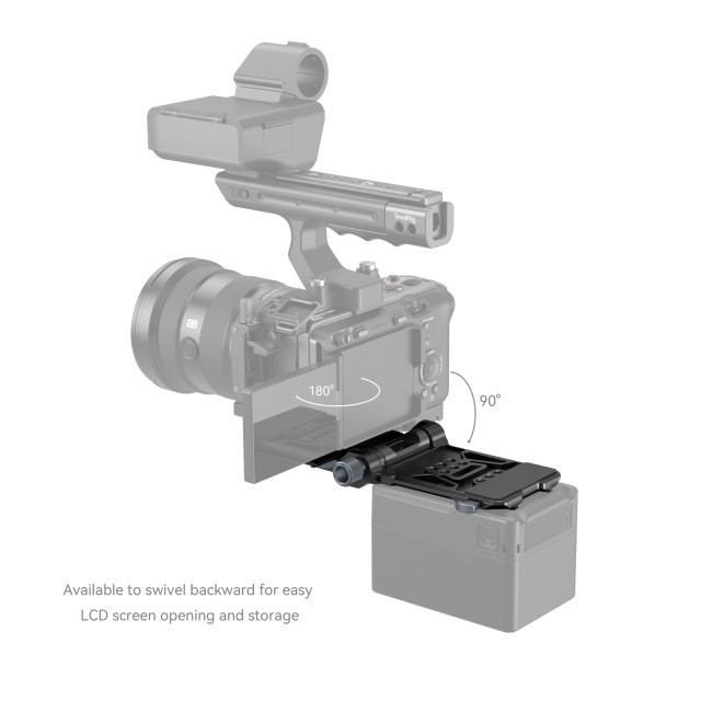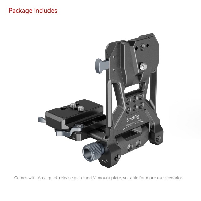 A SmallRig Compact V-Mount Battery Mounting System 4064B egy könnyű, kényelmes, minden egyben rögzítési megoldást jelent a V-mount akkumulátorok számára. A készlet egy V-mount akkumulátorlemezből, egy Arca-típusú gyorskioldó lemezből és egy V-mount lemezből áll. Különösen az alaplemez nyújtható, hogy különböző méretű tükör nélküli / DSLR fényképezőgépekhez illeszkedjen, amit a szerszám nélküli szerelés és beállítás segít, gyors és időtakarékos. Minden beépített Arca-típusú lemezzel rendelkező ketrecen túlmenően az Arca Swiss gyorskioldó lemezen keresztül közvetlenül támogathatja a fényképezőgépet és a DJI RS sorozatú kardánokat. Az 1/4"-20-as menetes furatokkal és V-csatlakozólemezzel ellátott V-csatlakozólemez további áramellátási megoldásokat biztosít az NP-F akkumulátor adapterlemez Professional Edition 3168 vagy a hordozható tápegységek tartója BUB2336 csatlakoztatásával. A kézi és állványos felvételek közötti váltás is könnyebbé válik az alsó Arca-típusú lemeznek köszönhetően. A 90 fokban elforgatható V-csatlakozós akkulemez elegendő helyet hagy a flip képernyő számára, a pivot csillapítás pedig megakadályozza, hogy a készülék leessen. A nagyobb tömörség és hordozhatóság érdekében összecsukható.