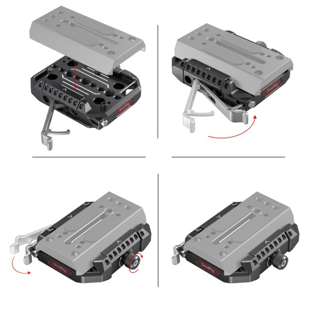 A SmallRig Manfrotto Drop-in Baseplate 2887B a Manfrotto gyorskioldó lemez gyors felszereléséhez készült. A gyorskioldó lemez a behelyezés után gyorsan rögzíthető és a gyorskioldó lemez szélességének megfelelően finoman beállítható. Kioldott állapotban van egy köztes pozíció. A reteszelési pozíció előre-hátra állítható, hogy megakadályozza a gyorskioldó lemez kicsúszását az alaplemezből. A gyorskioldó lemez két leesésgátló csavarral van előre beállítva, hogy megakadályozza a gyorskioldó lemez leesését a távolság beállításakor. Öt leesésgátló menetes furat van fenntartva, és a leesésgátló csavarokat a tényleges felhasználói igényeknek megfelelően lehet felszerelni. Több 1/4''-20 és 3/8''-16-os menetes lyukakkal rendelkezik az alján, hogy állványra vagy előre szerelhető legyen.