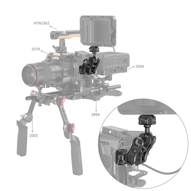 A SmallRig Magic Arm with Quick Release Ball Head 3515 egy gyorskioldású tartó, amely mindkét végén 1/4"-20-as menettel rendelkezik, párnákkal a tapadás fokozása és a karcolások megelőzése érdekében. Gyorskioldó gömbfeje kompatibilis az 1/4"-20-as menettel rendelkező eszközökkel, például kamerákkal, monitorokkal, cage-ekkel, szerelőlemezekkel stb. és a gyorscseretalp függőlegesen és stabilan be tud csatolni az alaplemezbe. A magic arm könnyen zárható és oldható. A gömbfej egy bilinccsel együtt lehetővé teszi a magic arm univerzális beállítását. Kivehető, cserélhető. Kompatibilis a 2132, 2133, 2134, 2114, 2108, BUM2383, 2211 tartozékokkal, a fenti tartozékokat igényei szerint választhatja. Akár 5 kg-ot is elbír, biztonságosan rögzíti az eszközöket felvétel közben.