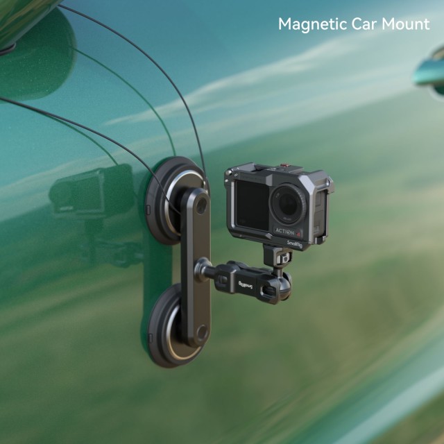 A SmallRig Dual Magnetic Suction Cup Mounting Support Kit for Action Cameras 4467 akciókamerákhoz akciókamerával történő autós jelenetek felvételéhez készült. Csak sima vasfelületeken ajánlott használni, például vasajtókon, korlátokon, konyhai eszközökön, sporteszközökön stb. Az exkluzív kettős anyagú kialakítás a mágneseket vákuumszívóval kombinálja, így…