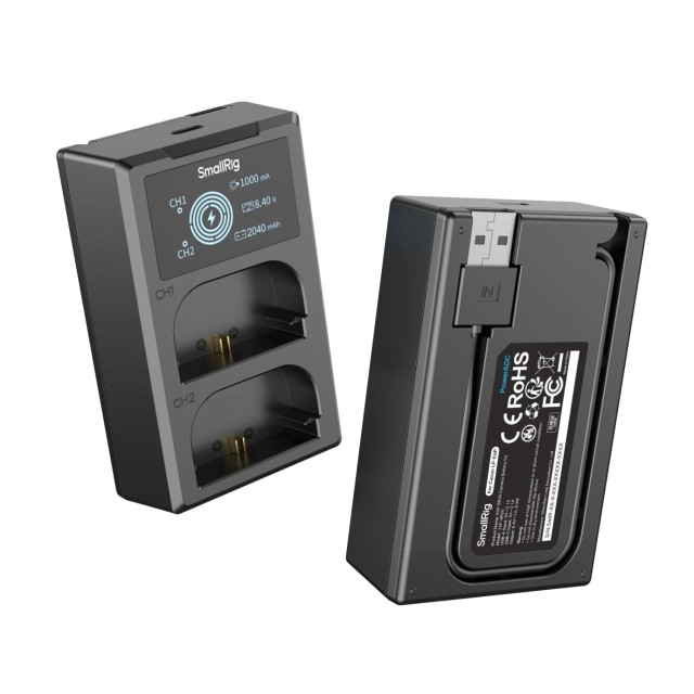 Mindegyik akkumulátor 2520mAh valódi névleges teljesítményt nyújt, így hosszabb felvételi időt biztosít az igényes munkafolyamatokhoz. A töltő két független nyílással rendelkezik, amelyek lehetővé teszik két akkumulátor vagy egyetlen akkumulátor egyidejű töltését, optimalizálva a hatékonyságot a több akkumulátoros beállítások esetében. Az intelligens LCD-kijelző valós idejű felügyeletet biztosít a töltési áram, a töltési feszültség, a töltés előrehaladása és a felhalmozott energiafelvétel tekintetében. Emellett a töltő USB-A és USB-A bemeneti portokat is tartalmaz, így kompatibilis a fali adapterekkel, autós töltőkkel és power bankokkal a sokoldalú töltési lehetőségek érdekében.
