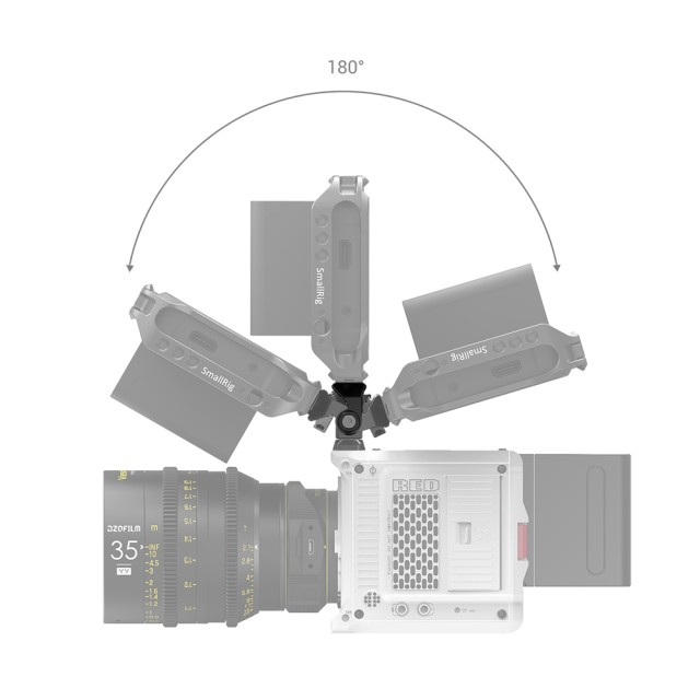 A SmallRig EVF monitorrögzítő a RED KOMODO 3045-hez egy 1/4"-20-as csavarral csatlakoztatja a monitorokat, és két 1/4"-20-as csavarral csatlakoztatja a RED KOMODO-t vagy a cage-et. 170 fokban dönthető, 360 fokban forgatható, és bármilyen szögben megállítható, 1,5 kg teherbírású, miközben minden tengelyen állítható. A teteje és az alja szilikon párnázattal van ellátva a karcolások megelőzése és az elmozdulás megakadályozása érdekében. Rendelkezik 1/4"-20-as furatokkal, amelyekhez további tartozékok rögzíthetők.