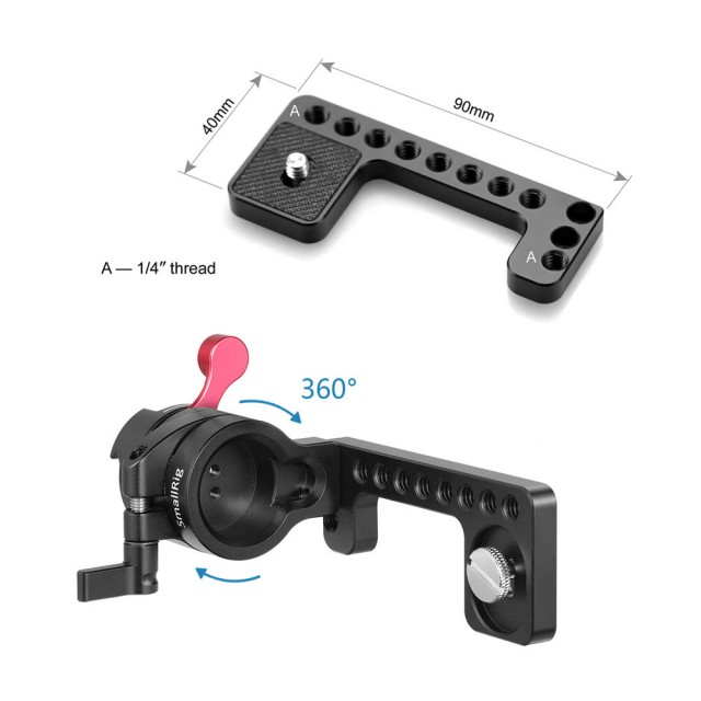 A SmallRig EVF Mount 1594 az egyik végén a kameraketre integrált NATO-sínre/NATO Rail 1195-re szerelhető, míg a másik végén 1/4"-os csavarral rögzíthető monitor/EVF. 360°-os csillapítással rendelkezik, és lehetővé teszi a gyors beállítást és a rugalmas megfigyelési szögeket. A tetején gumipárnával rendelkezik a véletlen karcolások elkerülése érdekében.