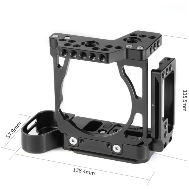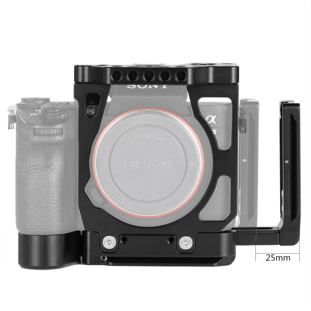 A SmallRig Half Cage with Arca L-Bracket for Sony A7III A7RIII 2236 (CCS2236) egy innovatív termék, amely cage és az L-bracket tulajdonságait egyesíti a hibrid fotósok igényeinek megfelelően. Mind az oldalsó, mind az alaplemez Arca-Swiss szabványú, lehetővé téve a gyors váltást a vízszintes és függőleges forgatási orientáció között. Az alaplap 20 mm magasra nyúlik, és tökéletesen illeszkedik a fényképezőgép testéhez, így kényelmes fogást biztosít kézből történő felvételkészítéshez. Gyorskioldó gombbal van ellátva az elemfedél körül, így az nem akadályozza a használatot. Az oldallap balra 25 mm-rel meghosszabbítható, ha több helyre van szüksége a kábel rögzítéséhez vagy kioldásához. Csatlakoztassa a SmallRig 2259 HDMI kábelbilincset, ha védeni szeretné a HDMI-kábelt és a portot. A tetején több 1/4''-20 és 3/8''-16-os furat és Arri pozicionáló furatok találhatók, így a SmallRig 2165 felső fogantyú és a SmallRig Ball Head Magic Arm 2115 gömbfej rögzíthető.