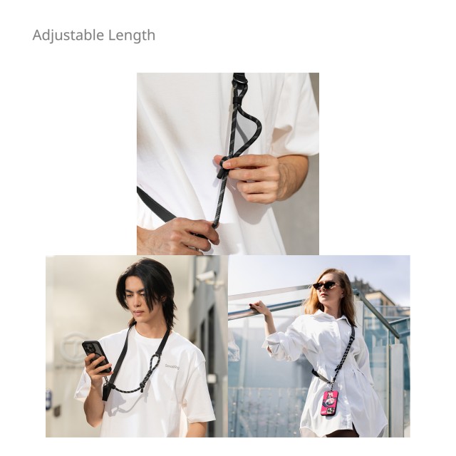 A SmallRig FilMov telefon vállpánt egy funkcionális, stílusos és környezetbarát telefonzsinór, amelynek hossza állítható, hogy illeszkedjen a különböző stílusokhoz. Valódi bőrből és nejlonkötélből készült, így tartós, mégis könnyű. A minimalista perui csomós kialakítás lehetővé teszi a hossz beállítását, alkalmas a nyak körül vagy a testen keresztben való viselésre. Többcélú akasztóponttal és alsó fémhoroggal rendelkezik olyan kiegészítők, mint az AirPods tokok, kulcsok vagy charmok rögzítéséhez.