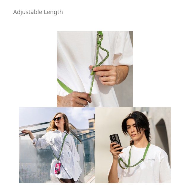 A SmallRig FilMov telefon vállpánt egy funkcionális, stílusos és környezetbarát telefonzsinór, amelynek hossza állítható, hogy illeszkedjen a különböző stílusokhoz. Valódi bőrből és nejlonkötélből készült, így tartós, mégis könnyű. A minimalista perui csomós kialakítás lehetővé teszi a hossz beállítását, alkalmas a nyak körül vagy a testen keresztben való viselésre. Többcélú akasztóponttal és alsó fémhoroggal rendelkezik olyan kiegészítők, mint az AirPods tokok, kulcsok vagy charmok rögzítéséhez.