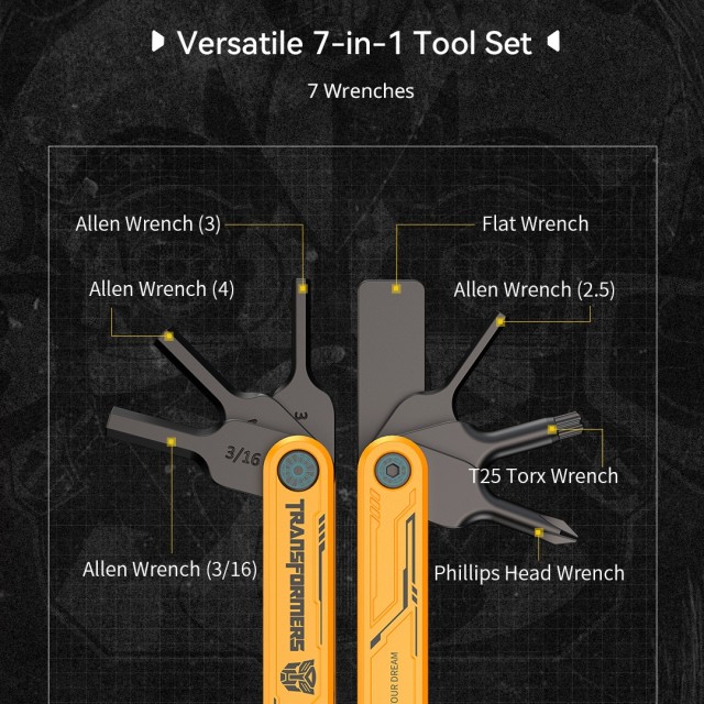· 7 az 1-ben multifunkcionális készlet: 4 db imbuszkulcs (2,5 mm, 3 mm, 4 mm, 3/16"), 1 db lapos fejű csavarhúzó, 1 db Phillips csavarhúzó és 1 db Torx T25 csavarhúzó