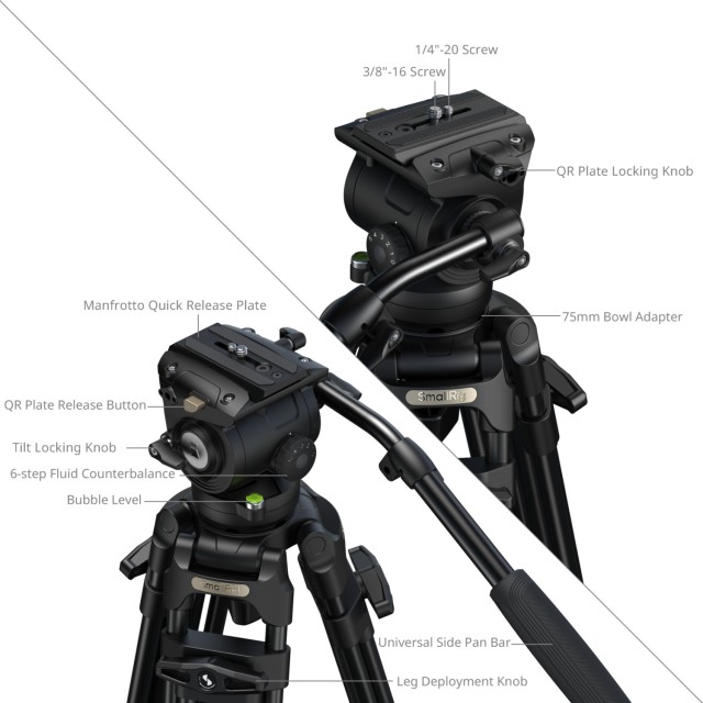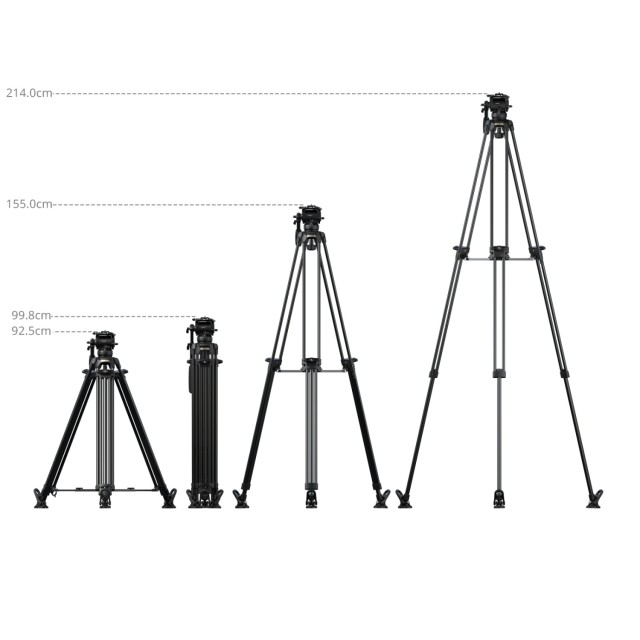 Alumíniumötvözetből készült lábakkal (Ø16 mm), 3 részes, 2-2-1 szegmensű konfigurációval és szabványos 75 mm-es tálcával, az állvány 6 fokozatú ellensúlyos folyadékos fejjel párosul. Az ellensúly mechanizmus 0 kg és 6 kg (0 lb és 13,2 lb) közötti terhelést támogat, míg a fej biztonságos üzemi súlya 10 kg (22 lb), maximális terhelhetősége pedig 15 kg (33,1 lb). Az állvány munkamagassága 92,5 cm és 214 cm (36,4 hüvelyk és 84,3 hüvelyk) között változik, biztosítva a nagy terhelésű stabilitást és a sima mozgást a magas szögű felvételek esetén.