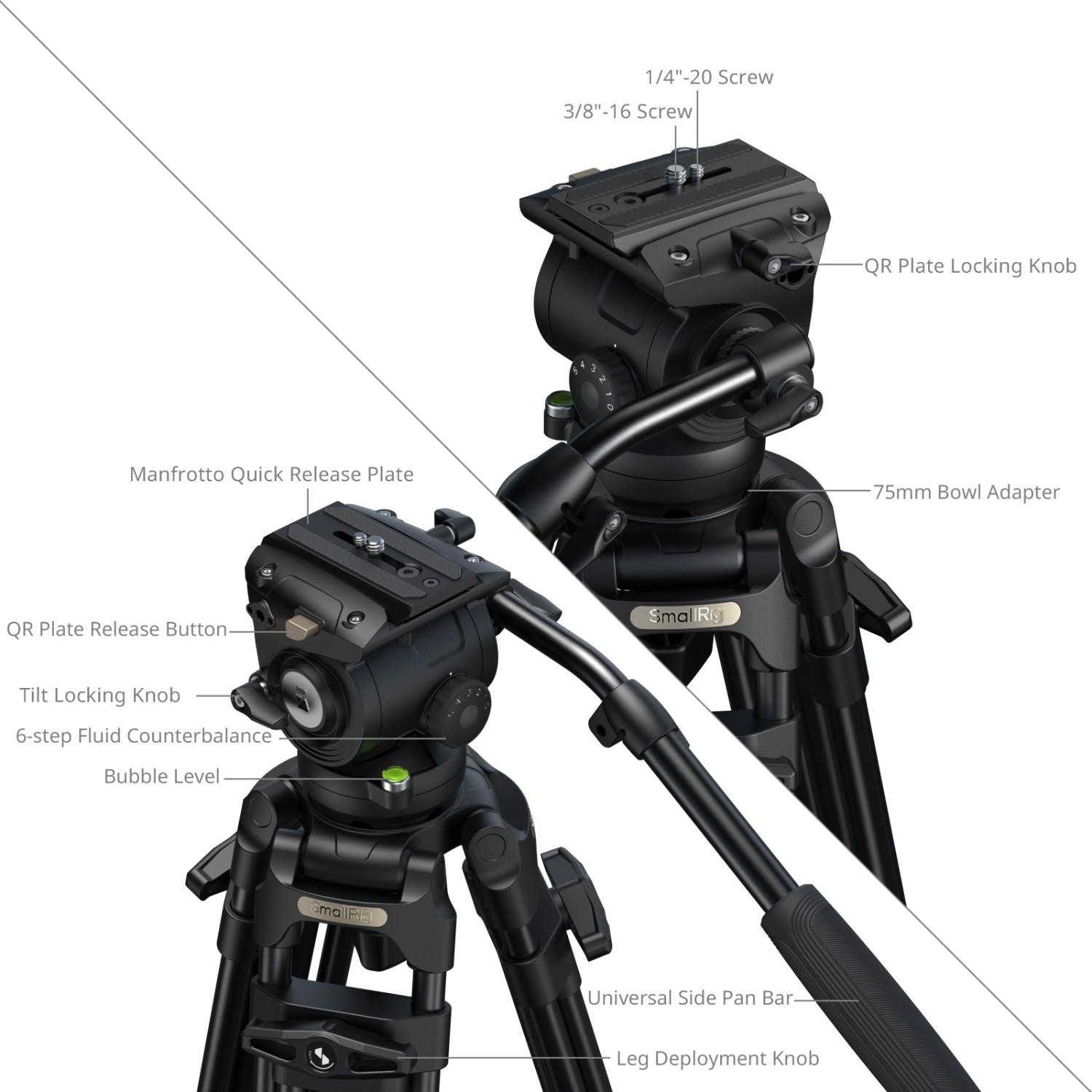 A SmallRig FSD16 FreeSpeed Heavy-Duty alumíniumötvözetből készült állvány 5579 professzionális videofelvételekhez lett kifejlesztve, magasabb felvételi perspektívát és gyors állványfelállítást biztosítva. Az egylépéses lábkioldó gomb lehetővé teszi a gyors magasságbeállítást, így egyszerűsítve a helyszíni munkamenetet.