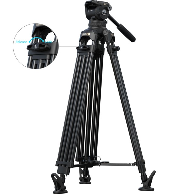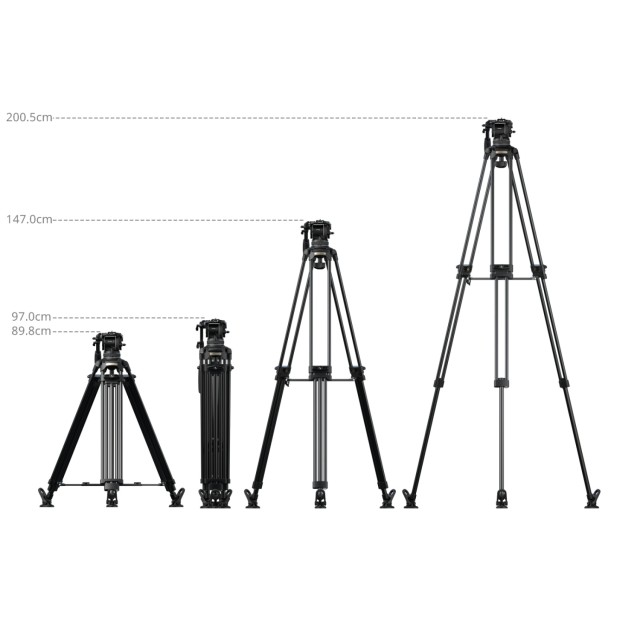 A háromrészes, 2-2-1 szegmensű alumíniumötvözet lábakkal (Ø18 mm) és standard 100 mm-es tálcával ellátott állványhoz egy 7 fokozatú ellensúlyos és független 4 fokozatú dőlés-/forgáscsillapítás-vezérléssel rendelkező folyadékfej tartozik. Az ellensúlymechanizmus 4 kg-tól 10 kg-ig (8,8 lb-tól 22 lb-ig) terhelést támogat, míg a fej biztonságos üzemi súlya 15 kg (33,1 lb), maximális terhelhetősége pedig 17 kg (37,5 lb). Az állvány munkamagassága 89,8 cm és 200,5 cm (35,4 hüvelyk és 78,9 hüvelyk) között változik, biztosítva a nagy terhelésű stabilitást és a sima mozgású felvételeket, miközben támogatja a magas szögű felvételi helyzeteket.