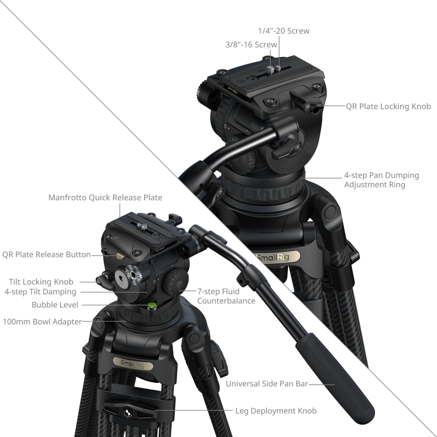 A SmallRig FSD18 FreeSpeed Heavy-Duty Carbon Fiber Tripod 5578 professzionális videofelvételekhez lett kifejlesztve, gyors felállítást és kivételes stabilitást biztosít nagy terhelés mellett. Az egylépéses lábkihelyező gomb lehetővé teszi a gyors magasságbeállítást, így egyszerűsítve a helyszíni munkavégzést.