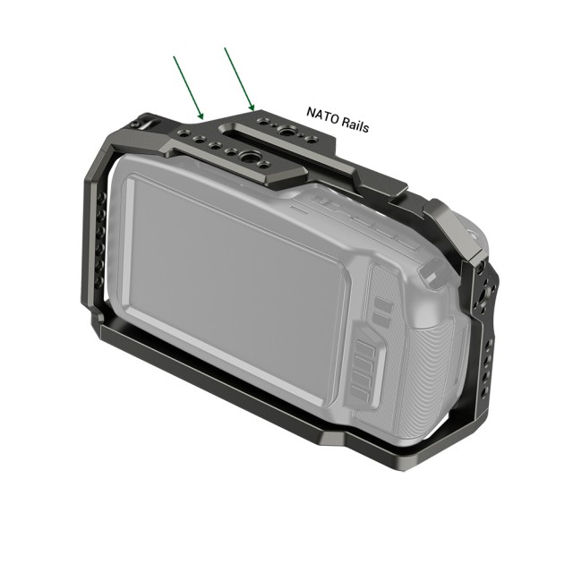 A SmallRig Full Cage for BMPCC 4K and 6K (Dark Olive) 2766 kiegészítő rögzítést és védelmet biztosít a kamerád számára. Többféle rögzítési ponttal rendelkezik, beleértve a NATO-síneket, 1/4"-20 és 3/8"-16-os rögzítőmeneteket, ARRI stílusú tartozéktartókat. A cage biztonságosan rögzíthető a kamerához a felső és alsó 1/4"-20-as csavarokkal, és tartalmaz pozicionáló csapokat és gumi alátéteket a BMPCC 6K vagy 4K kamerán való szilárd rögzítéshez. Az alaphoz tartozik egy imbuszkulcs is. A SmallRig Samsung T5 SSD 2767 tartóval, a SmallRig 2768 kábelbilinccsel és a SmallRig 2769 objektívadapter-tartóval működik együtt a videofelvételi felszerelés összeállításához.