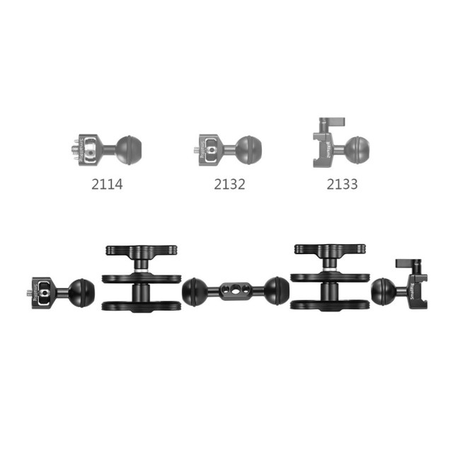 Ez a gömbfej NATO bilinccsel a SmallRig gömbfejkarok része. A 2134-es Smallrig gömbfejcsipesszel kombinálva más gömbfej tartozékokkal, például a 2114, 2132 és 2108-as gömbfejekkel is együttműködhet, hogy még több egyedi konfigurációt hozhasson létre. Tökéletesen illeszkedik a gyorskioldású NATO-sínekkel ellátott tartozékokhoz, mint például a Top Plate 1853, Side Plate 1854, és a kamera- és monitorketrecek, mint például a 1834/1726/1788.