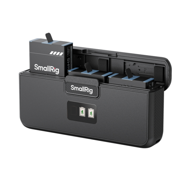 A SmallRig GoPro Camera Battery Kit 4565 3 nagy kapacitású, 1720mAh kapacitású akkumulátort és egy töltőtáskát tartalmaz gyors PD 27W-os töltéssel, TFT színes képernyővel a valós idejű monitorozáshoz és memóriakártyák tárolására, amely meghosszabbított energia kitartást biztosít a GoPro HERO9, HERO10, HERO11 és HERO12 kamerák számára.
