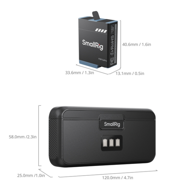 A SmallRig GoPro Camera Battery Kit 4565 a GoPro HERO9, HERO10, HERO11 és HERO12 kamerák teljesítményének és kényelmének növelésére szolgál. Ez a készlet három nagy kapacitású, 1720mAh kapacitású akkumulátort és egy töltőtáskát tartalmaz, amely támogatja a PD 27W-os gyorstöltést, így mindhárom akkumulátort mindössze 1,5 óra alatt teljesen feltöltheti, így a hosszabb filmezési munkamenetekhez is elegendő energiával rendelkezik.