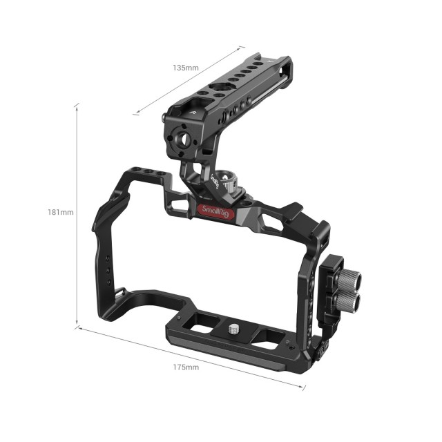 A SmallRig 3830-as Canon EOS R5/R6/R5 C kit úgy lett kialakítva, hogy megkönnyítse az alacsony szögű felvételek készítését, védje a kamerát és biztosítsa a további tartozékok elhelyezését. A készlet tartalmaz egy formapontos teljes cage-et, egy kábelbilincset és egy ARRI-szabvány felső markolatot. A cage egy csavarral és két rögzítő csap segítségével rögzíti a kamerát, számos rögzítési pontot kínál, mint például 1/4''-20 menetes furatokat, ARRI 3/8"-16-os helymeghatározó furatokat, vakusínt, Arca-Swiss gyorscsereszabványú kialakítást az alján. Olyan további kiegészítők szerelhetők fel rá, mint pl. a 2115-ös Magic Arm, a 2905-ös monitortartó, oldalsó fogantyú HSN2093, 1280-as gyorscseretalp (Manfrotto 501 Style) , LED lámpa, mikrofon, DJI RS 2/RSC 2 stb., alkalmas állványos, kézi és stabilizátoros felvételekhez. A HDMI és Type-C kábelrögzítő megakadályozza a véletlen szétkapcsolódást és stabil jelátvitelt biztosít; az ergonomikusan kialakított ARRI felső fogantyú kényelmes és stabil alacsony szögű felvételek készítését biztosítja, és 1/4''-20 menetes furatokkal, ARRI 3/8"-16-os helymeghatározó furatokkal, vakusínekkel rendelkezik, amelyek támogatják a monitorrögzítőket, varázskarokat stb.