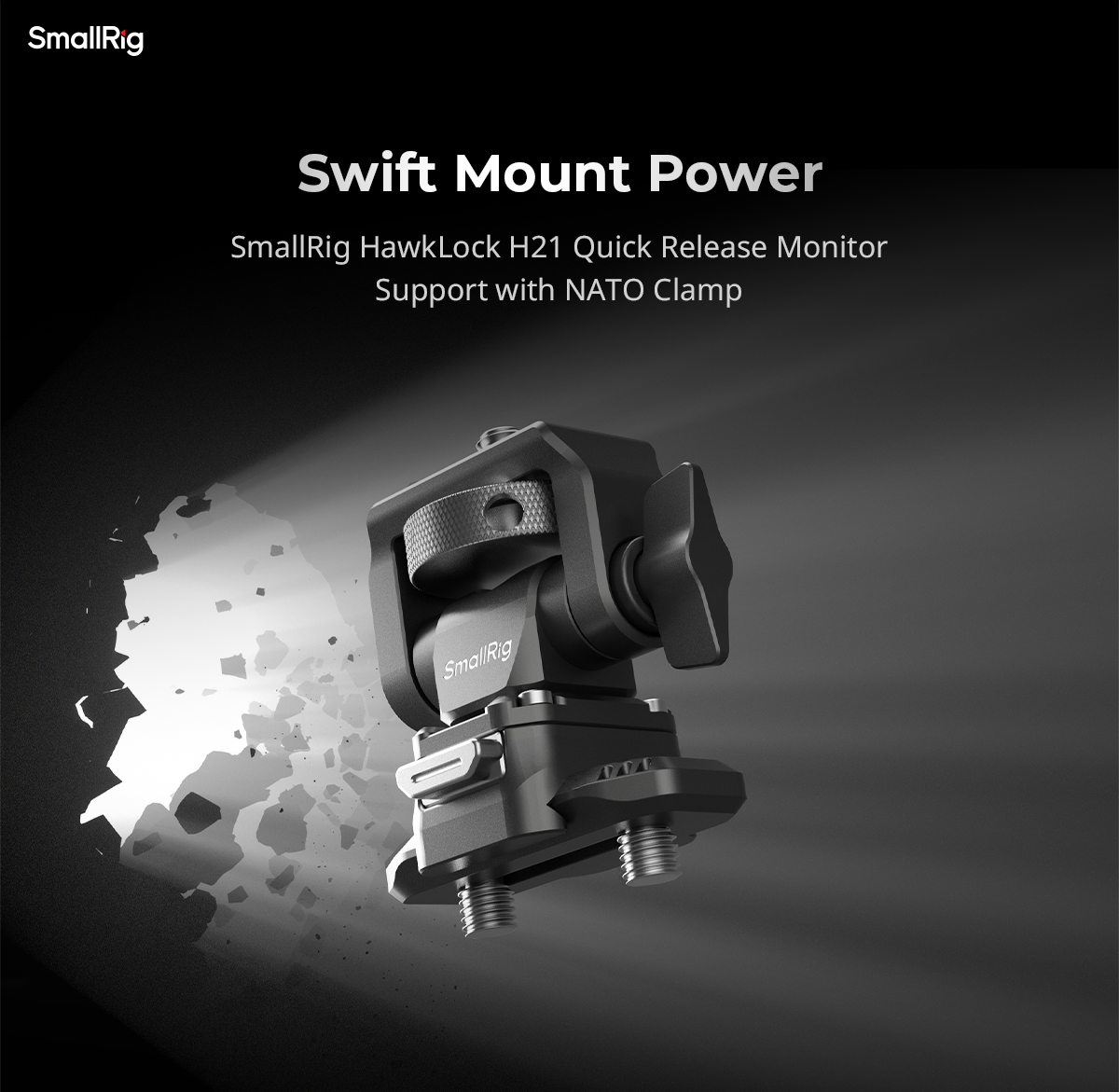 A SmallRig HawkLock H21 gyorskioldású monitor tartó NATO bilinccsel 4487 egy NATO bilinccsel ellátott gyorskioldású monitor tartóból és egy gyorskioldású NATO sínből áll. Nyomja meg a gombot a csapok kitágításához, és csúsztassa a NATO-sínt a horonyba. Engedje ki a gombot a NATO-sín biztonságos rögzítéséhez a monitortartóba, így a konstrukció stabil, a folyamat…