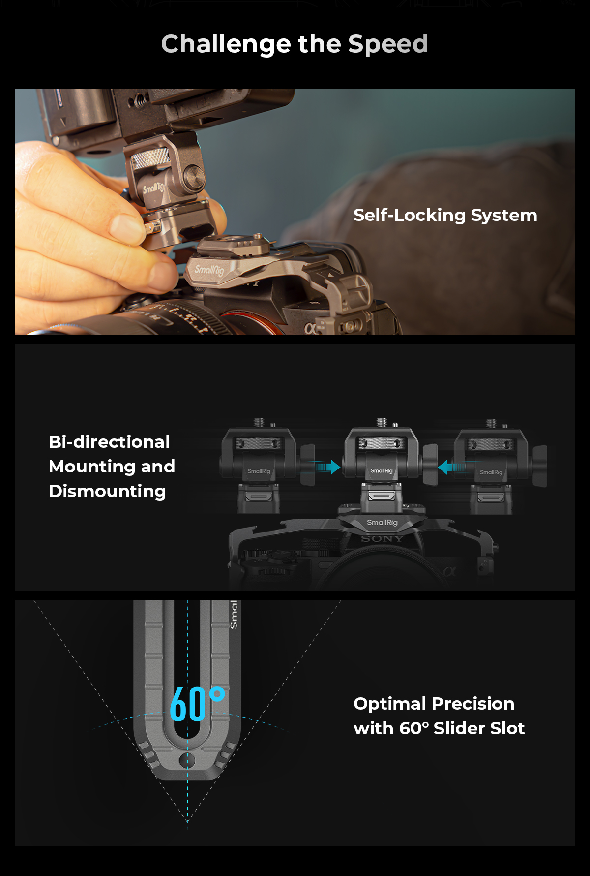 A SmallRig HawkLock H21 gyorskioldású monitor tartó NATO bilinccsel 4487 egy NATO bilinccsel ellátott gyorskioldású monitor tartóból és egy gyorskioldású NATO sínből áll. Nyomja meg a gombot a csapok kitágításához, és csúsztassa a NATO-sínt a horonyba. Engedje ki a gombot a NATO-sín biztonságos rögzítéséhez a monitortartóba, így a konstrukció stabil, a folyamat pedig időtakarékos. A tetején lévő 1/4"-20-as csavarral rögzíthető monitor, mikrofon, lámpa, vagy a beépített rugós rögzítőcsapnak köszönhetően Ninja V / Ninja V+ monitor a kitérés megakadályozása érdekében. Az elem támogatja a 160°-os dőlésbeállítást, és a dőléstengely feszessége gyorsan beállítható a gomb segítségével, hogy jobban alkalmazkodjon a különböző súlyú berendezésekhez. Az eszköz akár 2,5 kg / 5,5 fontot is elbír, a csillapítás pedig 10 000-szeres billentés után 20% alatt van, így tartós. 360°-os elfordítható beállítás a vízszintes tengely feszességének beállításával a mellékelt hatlapos kulccsal.