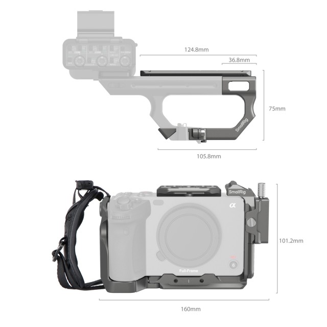 1. Kézi ketrec készlet Sony FX30 / FX3 fényképezőgépekhez, kézi pánttal a felvételkészítés megkönnyítésére.