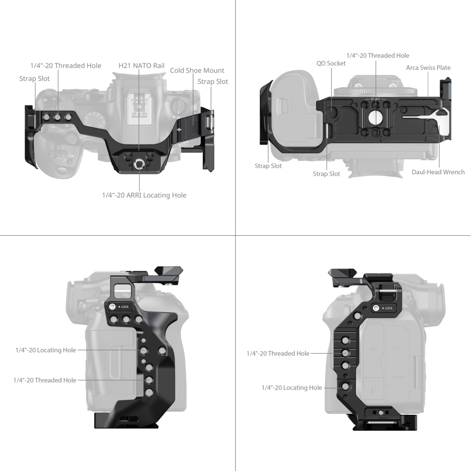 A SmallRig „HawkLock” gyorskioldó keret a Canon EOS R6 Mark III / R6 Mark II 5954 modellhez robusztus védelmet és széles körű rögzítési lehetőségeket biztosít professzionális fényképezéshez. A keret egy alsó 1/4"-20-as csavarral és kétoldalas rögzítőelemekkel biztonságosan rögzíthető a fényképezőgéphez, míg a több szilikon párna megakadályozza a karcolásokat és biztosítja a szoros illeszkedést. Teljes hozzáférést biztosít a gombokhoz, a kártyanyílásokhoz, a felhajtható képernyőhöz és az akkumulátor rekeszhez.