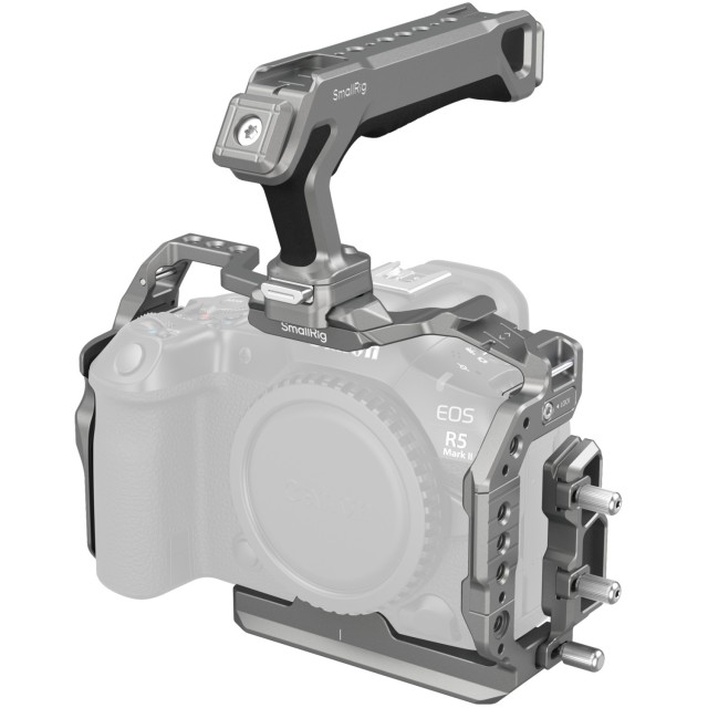 A SmallRig HawkLock Quick Release Cage Kit for Canon EOS R5 Mark II 5029 a kézi felvételek stabilitásának, hordozhatóságának és a tartozékok bővítésének fokozására szolgál. A készlet tartalmaz egy ketrecet, USB-C és HDMI kábelrögzítőket, valamint a HawkLock gyorskioldó fogantyút. A készletbe HawkLock gyorskioldó csatlakozókat építettek be a gyors és biztonságos rögzítés érdekében. Tartalmazza a H21 gyorskioldó NATO sínt, a H18 gyorskioldó hidegcipő rögzítést, a H38 Arca-Swiss gyorskioldó lemezt, 1/4"-20 menetes furatokat, 1/4"-20 rögzítőfuratokat, 3/8"-16 menetes furatokat, ARRI 3/8"-16 rögzítőfuratokat, hidegcipő rögzítéseket, NATO síneket, QD interfészeket, str