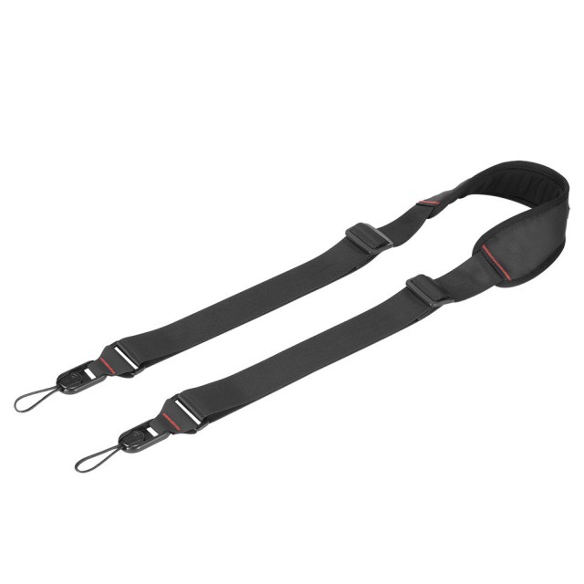 A pánt hossza állítható, a maximális hossza 160 cm, a minimális hossza pedig 110 cm, hogy a különböző méretű embereknek megfeleljen. Az egyedülálló Rapid Link rendszer lehetővé teszi a fényképezőgépszíj gyors rögzítését/leválasztását, és biztonságosabb hordozást biztosít fényképezőgépének. A heveder QR lemezzel van ellátva, amely kompatibilis mind az Arca-Swiss, mind a Manfrotto® RC2 állványokkal. A négy sarkon található négy kötélnyílás Rapid Link csatlakozók rögzítésére használható a fényképezőgép többféle hordozási módja érdekében.