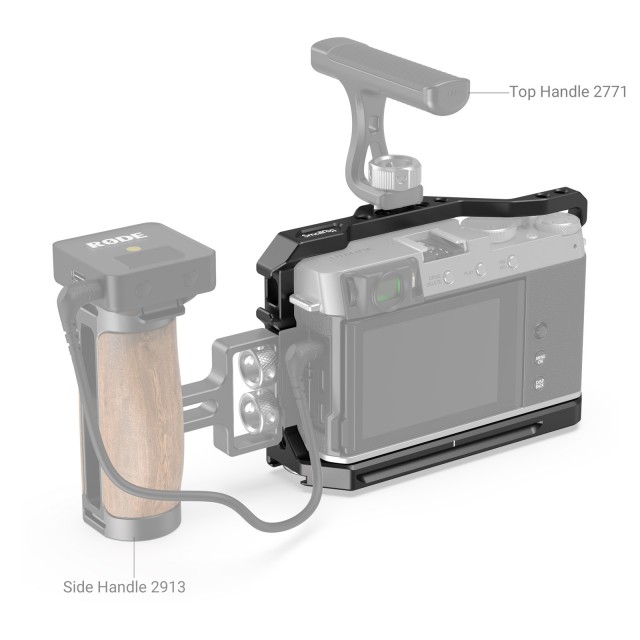 ASmallRig 3230-as Fujifilm X-E4 Camera Cage a kiegészítők rögzítési pontjainak biztosítására és a professzionális videókészítéshez szükséges fogás élményének fejlesztésére szolgál. Egy 1/4"-20-as csavarral rögzül a kamera alján, és elöl csavarodásgátló karimákkal rendelkezik. Több 1/4"-20-as menetes furattal rendelkezik, amelyek támogatják a SmallRig HTS2756 felső markolat, a 2904-es monitortató, a 2879-es vakusín stb. rögzítését. A felső ARRI 3/8"-16-os helymeghatározó furat a 2165-ös ARRI felső markolat és a 2903-as monitortartó rögzítéséhez illeszkedik, a bal oldali integrált vakusín pedig lehetővé teszi mikrofon vagy kameralámpa felszerelését.