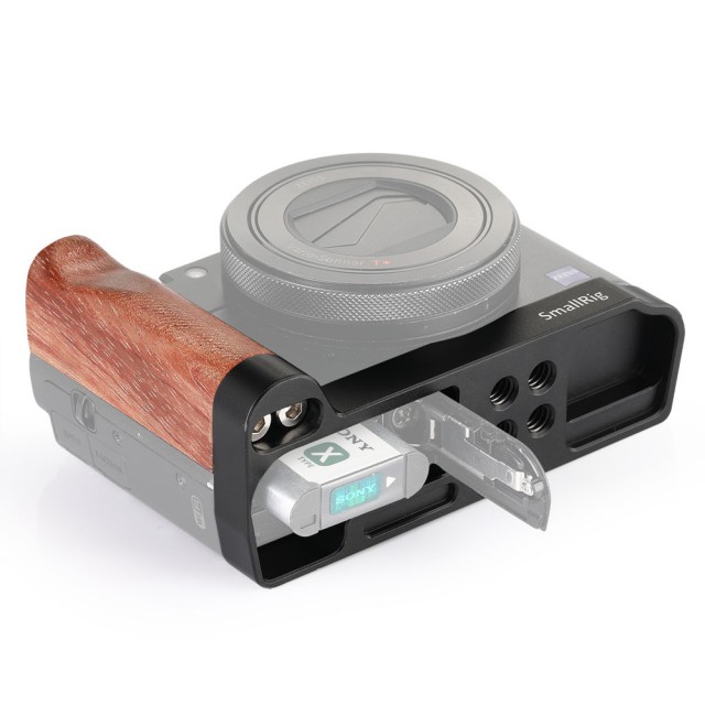 A SmallRig 2248-as L-alakú fa markolat a SONY RX100 M3/M4/M5/M5A fényképezőgépekhez készült. Az alján lévő csavarral szilárdan rögzíti a fényképezőgépet. A jobb oldali fa markolat növeli a fényképezőgép markolat méretét, ami jobb kézből történő fényképezési élményt biztosít. Az akkumulátor ajtaja pedig elérhető, ha ez a markolat fel van szerelve. Emellett lehetővé teszi az LCD-képernyő felfordítását, és hozzáférést biztosít a fényképezőgép összes portjához és gombjához. Ezen kívül az alján további négy 1/4''-20-as menetes furattal rendelkezik, amelyeken olyan állványlemezek rögzíthetők, mint például a 2146-os Arca gyoescseretalp. És még mindig hozzáfér az akkumulátor ajtóhoz az állványlemezekkel. Ráadásul kompatibilis a Peak Design szíjjal. A könnyű és kompakt jellemzőkkel megtartja a fényképezőgép zsebben hordozható kialakítását.