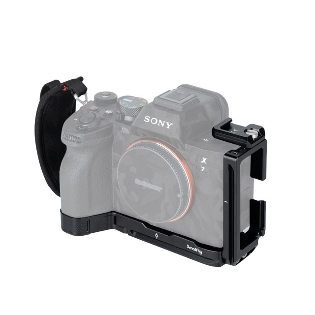 A SmallRig L-Bracket Kit for Sony Alpha 7 IV / Alpha 7S III / Alpha 7R IV / Alpha 1 / Alpha 9 II 3856 L-konzol kit fokozott fogásérzetet és gyors váltást tesz lehetővé a stabilizátoros felvételek, a vízszintes és függőleges állványos felvételek között. A kamera aljára egy 1/4" -20-as csavarral és rögzítőcsappal rögzíthető, beépített szilikonbetéttel rendelkezik, amely megakadályozza a karcolásokat és a csavarodást. Az elemtartó ajtónál van egy orsókulcs, amely illeszkedik a fényképezőgép ívéhez, és helyet hagy a kisujjnak a kényelmes fogás érdekében.