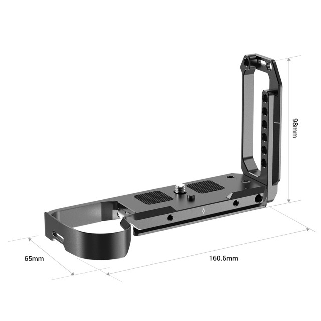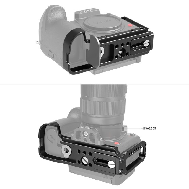 A SmallRig L tartó Panasonic S1H LCP2655 moduláris kialakítású, csavarodásgátló peremekkel, amelyek megakadályozzák a kamera elfordulását, és kényelmes fogást biztosítanak a kisujj támogatásához. Mind az alaplemez, mind az oldallap Arca-típusú, kompatibilis fecskefarok lehetővé teszi a kamera függőleges vagy vízszintes helyzetben történő rögzítését. A kamera aljához egy 1/4-es csavarral rögzül, és csavarodásgátló csapokkal rendelkezik a csavarodás megakadályozására.