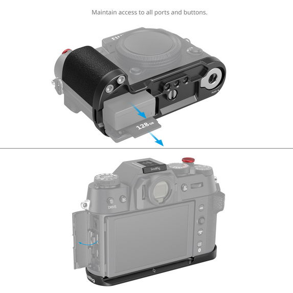 A tartó egy forró cipőfedéllel is rendelkezik, amelyre a FUJIFILM hanghullám és az alapító évszám van nyomtatva, tisztelgésként a márka öröksége előtt. Ezenkívül egy zárkioldó gombot is tartalmaz, amely puha és zökkenőmentes fényképezési élményt biztosít. A pánthely kompatibilis az olyan csuklópántokkal, mint a SmallRig ID: 3848, ami további kényelmet biztosít a mozgásban lévő fotósok számára.
