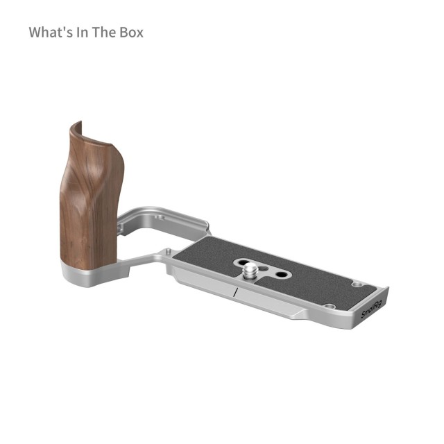 A SmallRig L-alakú rögzítőlemez fa fogantyúval Sony Alpha 7C II / Alpha 7CR 4796 fényképezőgép markolatának javítására szolgál. Az L-alakú markolat alul egy 1/4"-20-as csavarral rögzíthető a fényképezőgéphez, a beépített szilikonbetétek pedig megakadályozzák a karcolásokat. A markolat természetes tömör fából készült, elegáns, gazdag, természetes tapintású, és ergonómiailag úgy tervezték, hogy javítsa a fogásérzetet. A beépített Arca-Swiss gyorskioldó alaplemez lehetővé teszi az egyszerű és gyors Arca-típusú állvány összeszerelését és szétszerelését, míg a pántfurat kompatibilis a csuklópánttal (ID 3848), a mágneskulcs pedig a könnyebb szét- és összeszerelést segíti.