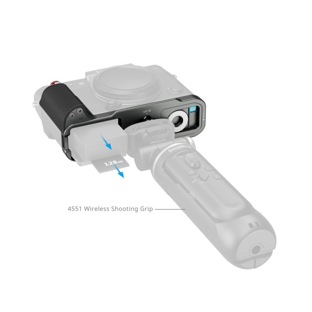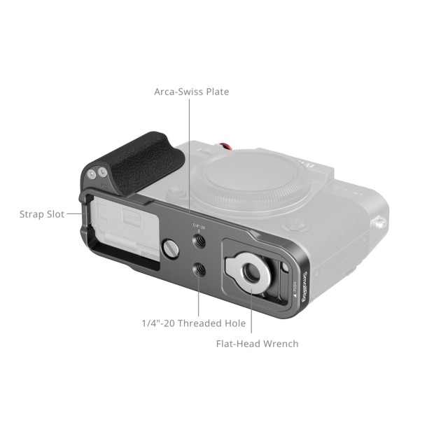 Az L alakú markolat teljes hozzáférést biztosít a kamera összes interfészéhez, beleértve az akkumulátorrekeszhez, a fókuszgyűrűhöz, a memóriakártya-nyíláshoz és a hangszóró-csatlakozókhoz. A készlet tartalmaz egy lapos kulcsot is a könnyű összeszereléshez és szétszereléshez, valamint egy exponáló gomb fedelet, amely javítja a tapintási visszajelzést fényképezés közben.
