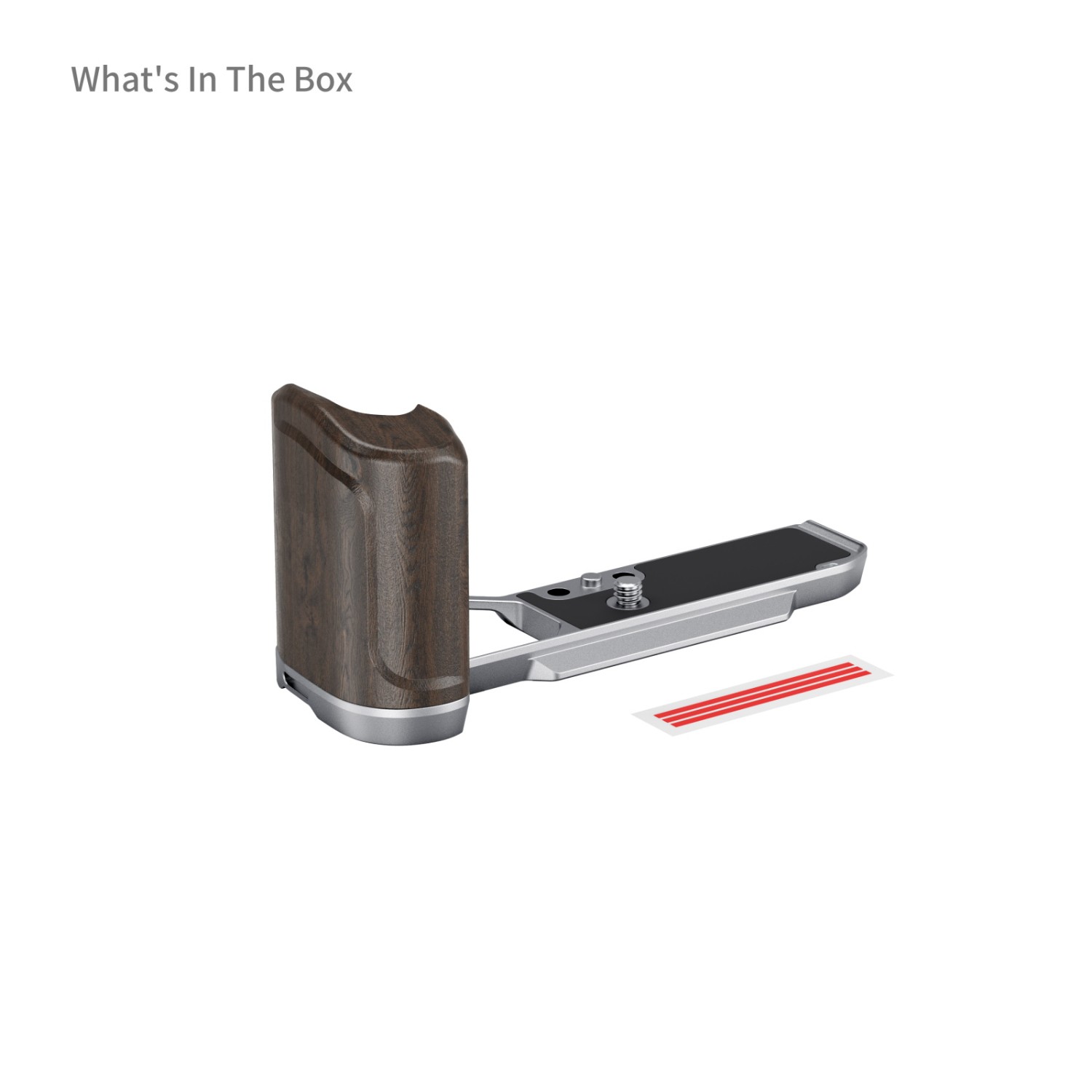 A SmallRig L alakú rögzítőlemez fa fogantyúval Nikon Z f (ezüst) 5707 modellhez biztonságos és kényelmes fogást biztosít a kamera jobb irányításához. Az L alakú fogantyú alján található 1/4"-20-as csavarral rögzíthető a kamerához, és beépített szilikon párnákkal rendelkezik a karcolások elkerülésére. Kiváló minőségű fából készült, ergonómikus kialakítású, kiváló kényelmet biztosít.