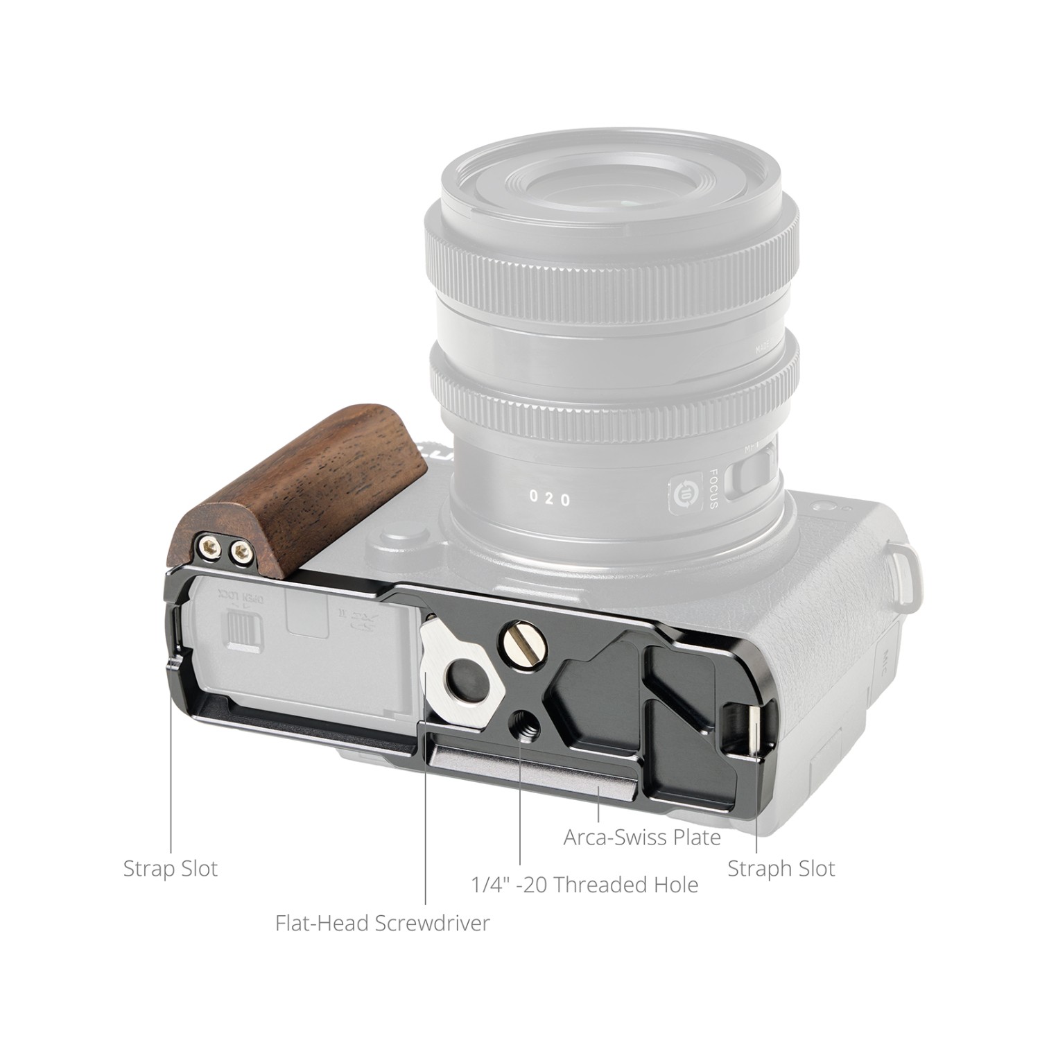 A SmallRig L alakú rögzítőlemez fa fogantyúval a Panasonic S9 5945 modellhez készült, hogy javítsa a kamera fogását. Zökkenőmentesen illeszkedik az S9 vázához, egységes esztétikát biztosítva, miközben jelentősen javítja a fogás stabilitását.