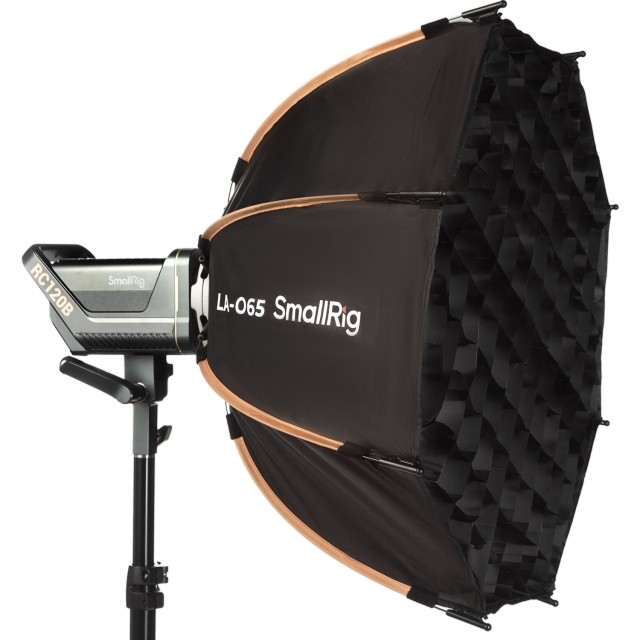 A SmallRig LA-O65 Octagonal Softbox 4874 egy sokoldalú 65cm / 25.6in nyolcszögletű softbox. Univerzális Bowens rögzítésű kialakítással rendelkezik, így kompatibilis a SmallRig RC 120D / RC 120B / RC 220D / RC 220B / RC 350D / RC 350B / RC 450D / RC 450B, valamint a piacon kapható más, a Bowens rögzítést használó márkájú, pontszerű fényforrásokhoz használható márkákkal. A softbox a legújabb gyorskioldó szerkezettel van felszerelve, amely lehetővé teszi a könnyű, egy műveletből álló telepítést és szétszerelést, így biztosítva a zökkenőmentes felhasználói élményt. A mellékelt 45°-os méhsejtrács hatékonyan szabályozza a fényeloszlást, így számos forgatókönyvhöz alkalmas. Az ipari minőségű softbox anyagokat és a nagy fényvisszaverő képességű bevonatokat használó LA-O65 Octagonal Softbox alapfelszereltségként két diffúziós kendővel rendelkezik a lágy fényhatások fokozásához vagy a fényáteresztés növeléséhez, az Ön igényeihez igazodva.