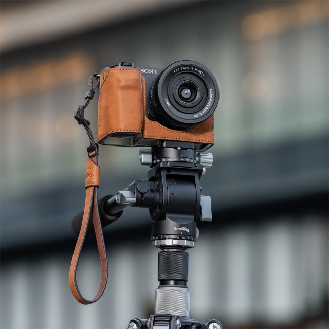 A SmallRig Leather Case Kit for Sony ZV-E10 II (Brown) 4889 bőr tok készletet úgy tervezték, hogy megvédje fényképezőgépét, miközben megőrzi annak klasszikus vonzerejét. A készlet egy bőr tokot és egy csuklópántot tartalmaz, mindkettő tartós és légáteresztő, felső szemcsézetű bőrből készült. A beépített habszivacsos kézi fogantyú ergonomikus fogást biztosít, és további biztonságot nyújt, míg a plüss belső bélés megvédi a fényképezőgépet a karcolásoktól. Az alján található 1/4"-20-as hüvelykujjcsavar lehetővé teszi a fényképezőgép szerszámmentes rögzítését. A tok kialakítása biztosítja az akadálytalan hozzáférést a fényképezőgép interfészeihez és gombjaihoz, például az akkumulátortartóhoz, a fókuszálási módhoz és a kártyafoglalathoz. A tok integrált, űrtechnikai minőségű alumínium belső kerettel rendelkezik, amely nem csak megfelelő illeszkedést biztosít, hanem megvédi a fényképezőgépet az ütésektől és ütődésektől is. Az alján található rögzítőcsavar beépített 1/4"-20-as menetes furattal rendelkezik a közvetlen állványrögzítéshez a tok eltávolítása nélkül. A készlet emellett egy valódi bőr csuklópántot is tartalmaz a kényelmes és megbízható fényképezőgép-szállításhoz.