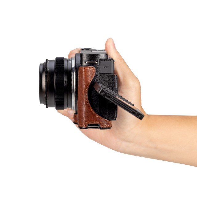 A SmallRig bőr fél tok a Panasonic LUMIX S9 4703 fényképezőgéphez úgy lett kialakítva, hogy védje a fényképezőgépet, miközben fokozza annak vintage báját és fogását. Beépített fa markolat a megnövelt ujjfogási erő érdekében. A fél tok tartós és légáteresztő, felső szemcsés bőr anyaga gazdagítja a fényképezőgép retro esztétikáját és tapintását, míg a velúrbélés védelmet nyújt a karcolásokkal szemben. A beépített 1/4"-20-as hüvelykujjcsavarral az alján a tok közvetlenül a fényképezőgéphez rögzíthető, külön szerszámok nélkül. A tok akadálytalan hozzáférést biztosít a fényképezőgép legfontosabb funkcióihoz, például az akkumulátortartóhoz, az LCD-képernyőhöz, a kártyafoglalathoz stb. Az integrált, űrtechnikai minőségű alumíniumkeret biztosítja a szoros illeszkedést és az ütésvédelmet. Az alján 1/4"-20-as menetes furat található, amely lehetővé teszi a közvetlen állványrögzítést a fél tok eltávolítása nélkül.